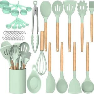 33-Piece Silicone Kitchen Utensil Set with Wooden Handles – Heat-Resistant, Non-Stick Safe Cooking Tools